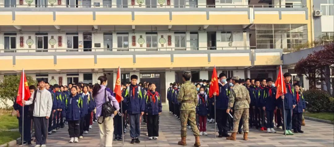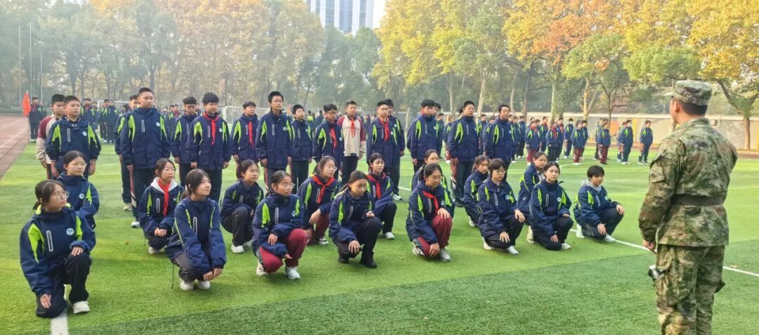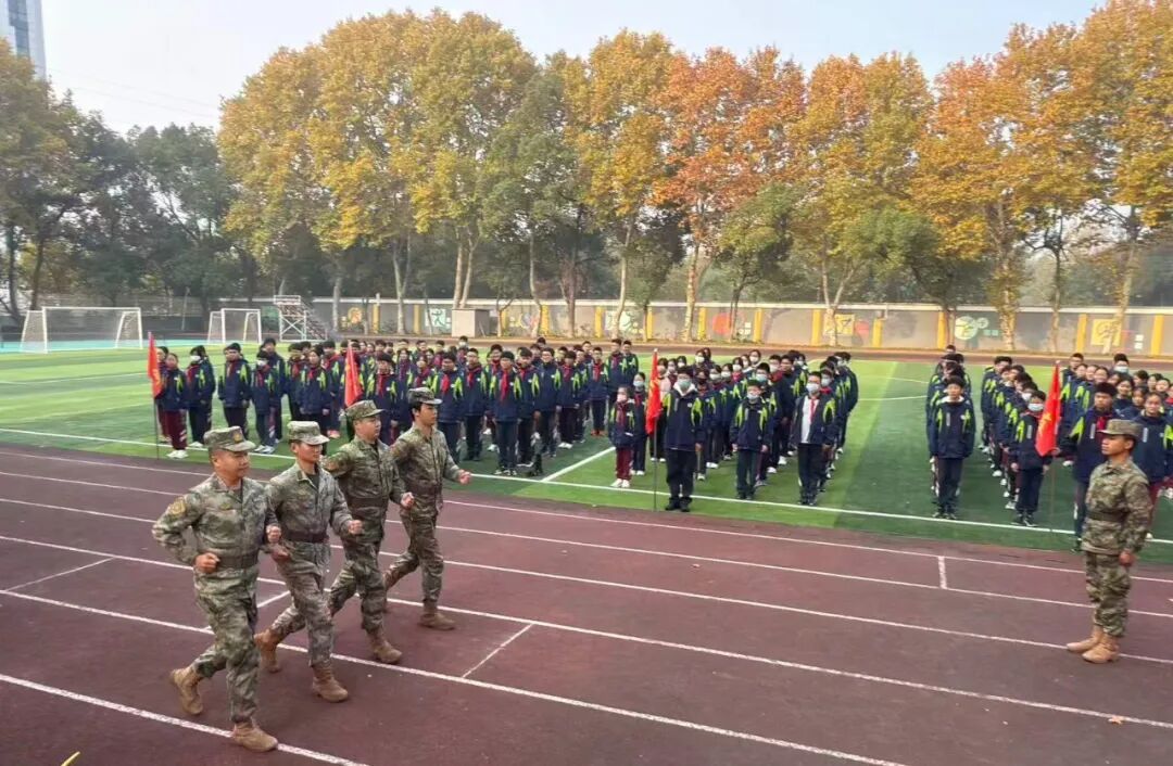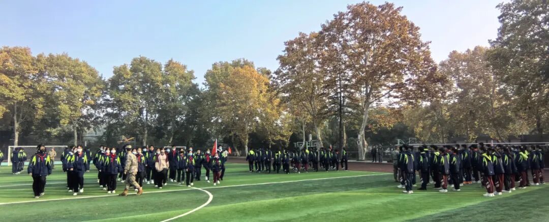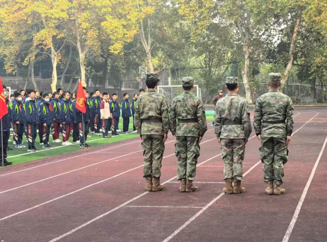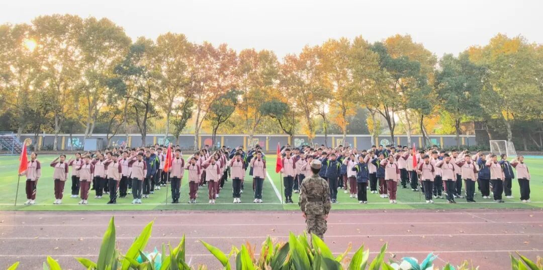 14日8时,各班教室中教官与班主任细致交接、核对人数。8时30分,运动场开营式如期举行,总教官授旗仪式庄重肃穆,教官队列表演赢得阵阵掌声。
