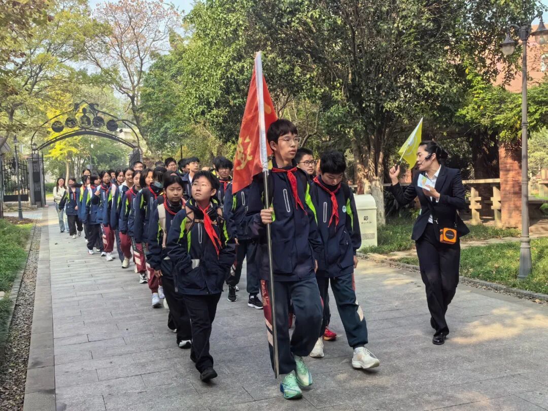 9时15分,学生们在教学楼前广场集结完毕,怀着期待踏上前往梅山钢铁文化旅游区的征程。