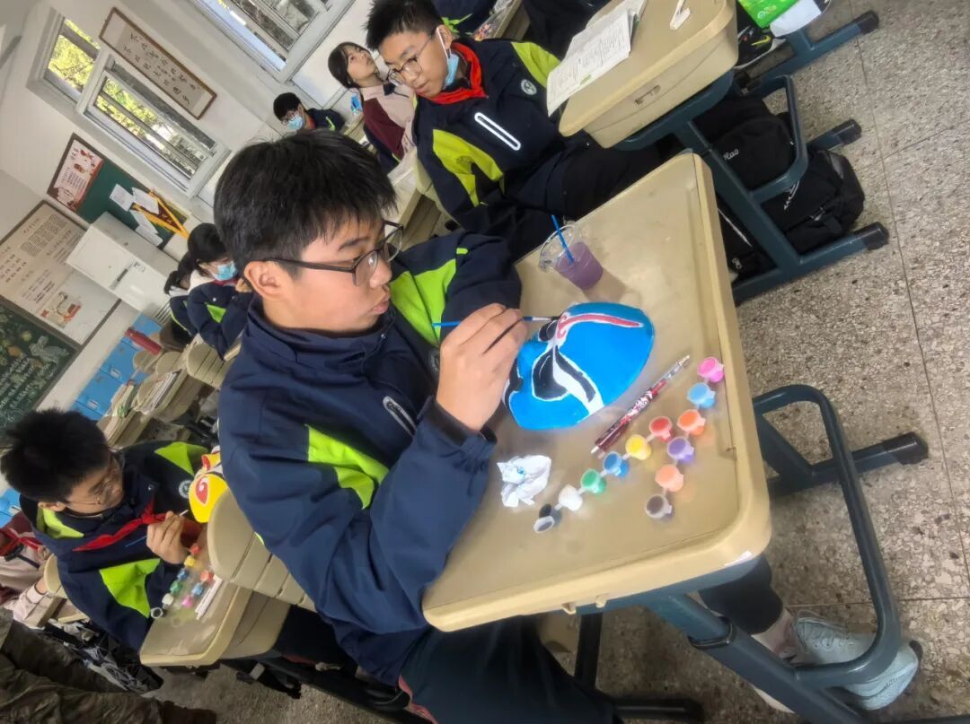 第二天的京剧脸谱学习同样精彩。老师详细介绍了脸谱的色彩寓意——红色代表忠义、白色象征奸诈、黑色寓意刚正,不同的纹路图案也暗藏玄机。拿起画笔,我们在白色脸谱坯上勾勒线条、填充色彩,从生疏到熟练,一步步完成属于自己的作品。看似简单的涂色,实则考验耐心与审美,每一笔都要精准到位。这个过程让我感受到京剧艺术的博大精深,也体会到传统文化的独特魅力。