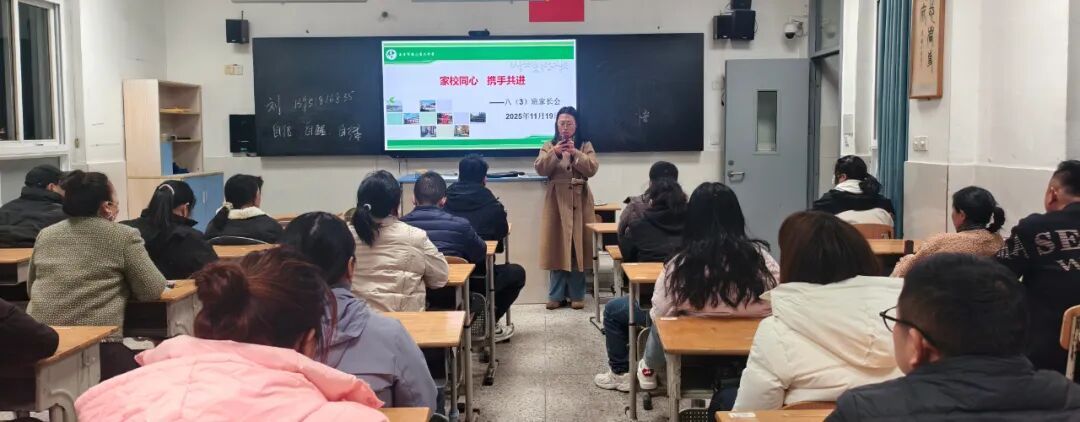 同日下午 4:40,八年级的家长会在各班教室同步开启。班主任与任课老师携手,就学科学习重点、班级管理特色及学生身心发展等方面与家长深入交流。一个个详实的案例、一句句恳切的建议,在教室中传递着共育的诚意,家长们时而凝神倾听,时而提笔记录,家校间的理解与信任在这场对话中悄然升温。