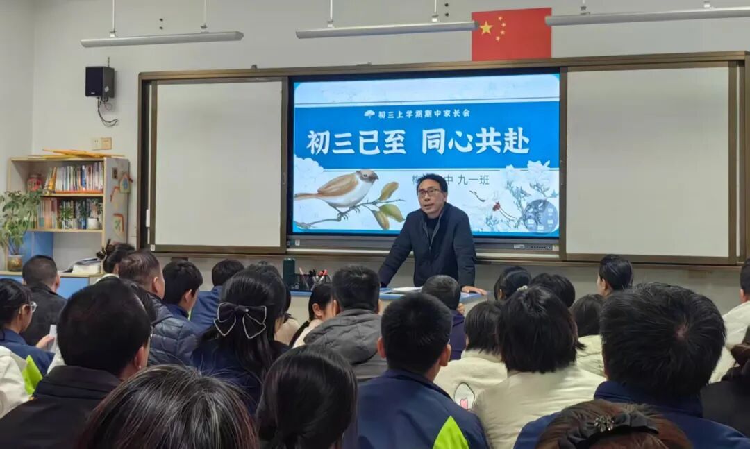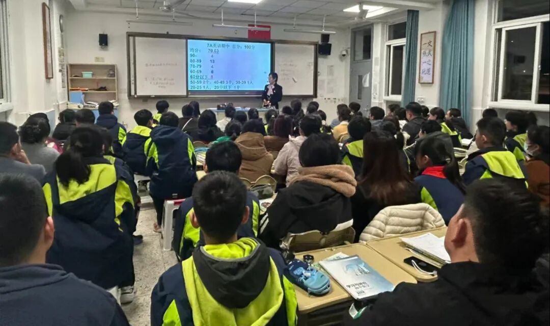 11 月 21 日下午,九年级家长会在一楼报告厅开启时,阳光尚在,而当各班教室的交流渐入佳境,夜幕已悄然降临,学校书记、校长王小强在报告厅为家长们深度剖析期中学情,从学科短板到备考策略,为九年级学子的中考征程指引方向。