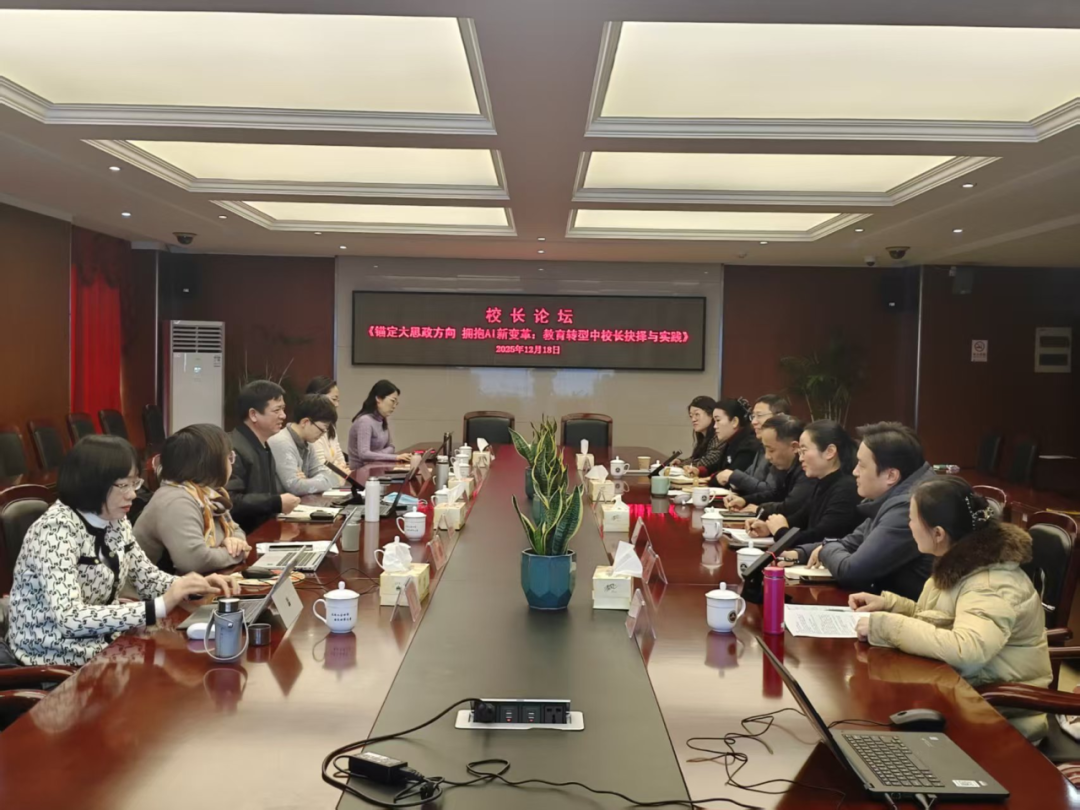 12月18日,《锚定大思政方向 拥抱AI新变革:教育转型中校长抉择与实践》校长论坛在南京市金陵小学五楼西会议室顺利召开。南京市金陵小学陈健校长、徐海龙副校长、林卫云副校长、华琴副校长、彭峰副校长、李新副校长、冯美玲副校长、王新副校长等校领导班子成员,与苏州工业园区方洲小学王水丽书记、张家港市暨阳实验小学卞向飞书记、相城区第一实验小学周丽芳书记、苏州市三元实验小学校长姚敏、张家港市云盘小学唐燕书记、常熟市游文小学曹卫星书记等苏州各校教育专家齐聚一堂,围绕“人工智能和思政教育”的深度融合展开深入研讨与经验交流。