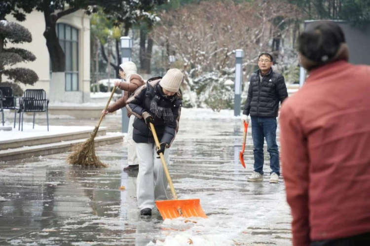 雪落校园早 情暖上学路 ——南京市金陵河西学校雪天护学暖寒冬