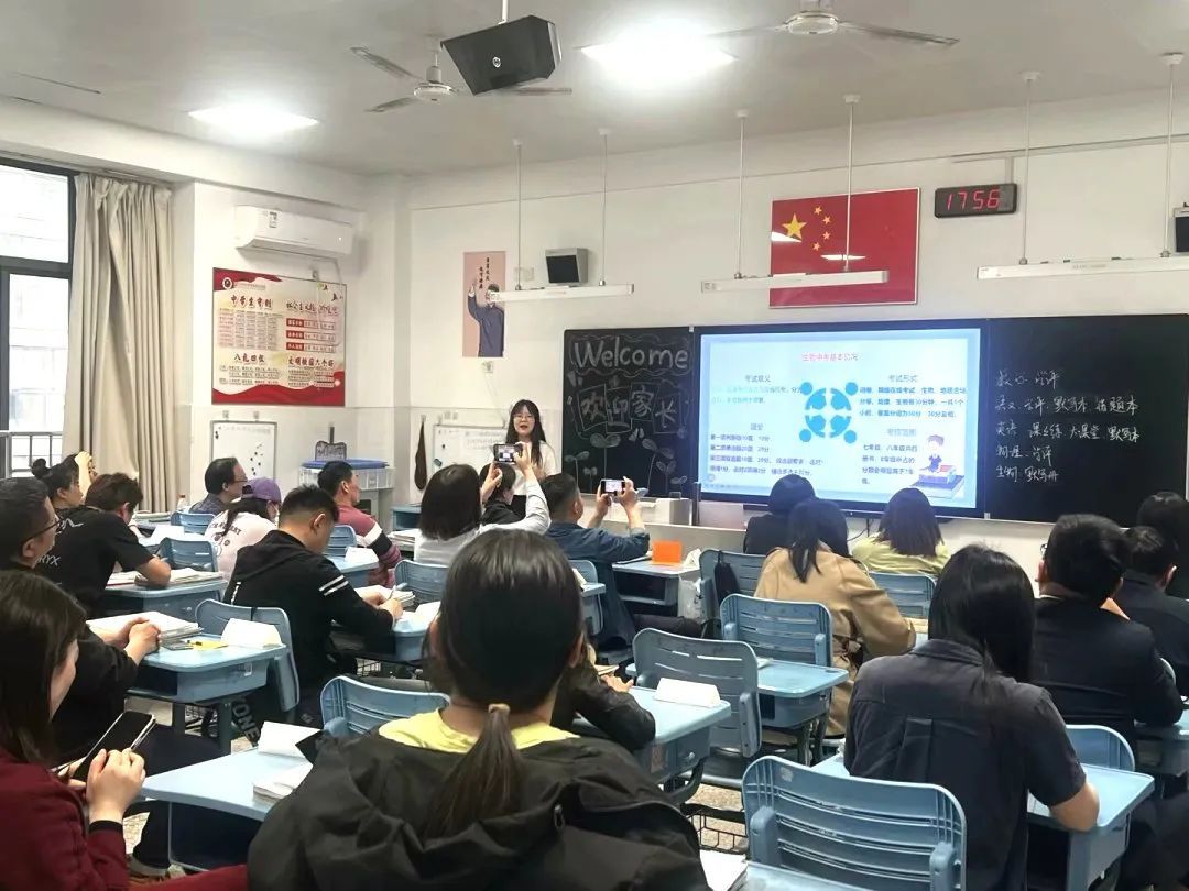 专家讲座结束后,初一初二年级的家长会正式开始。家长们纷纷走进各自孩子的班级,与任课老师面对面交流。各班班主任精心准备了班级情况汇报,详细介绍了学生的学习和生活情况。各个学科的任课老师们还针对每个学生的特点,与家长进行了深入的沟通,共同探讨学生的学习方法和成长目标。家长们也积极反馈孩子在家的表现,与老师们共同商讨如何更好地配合学校教育。家长会上,气氛融洽,家校双方在交流中增进了理解与信任,为学生的成长奠定了坚实的基础。