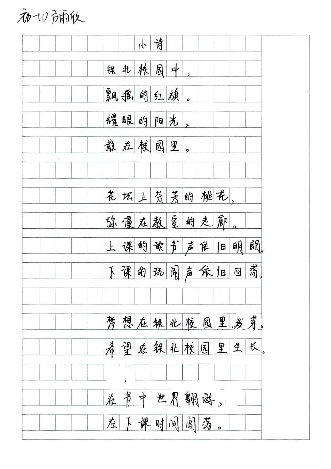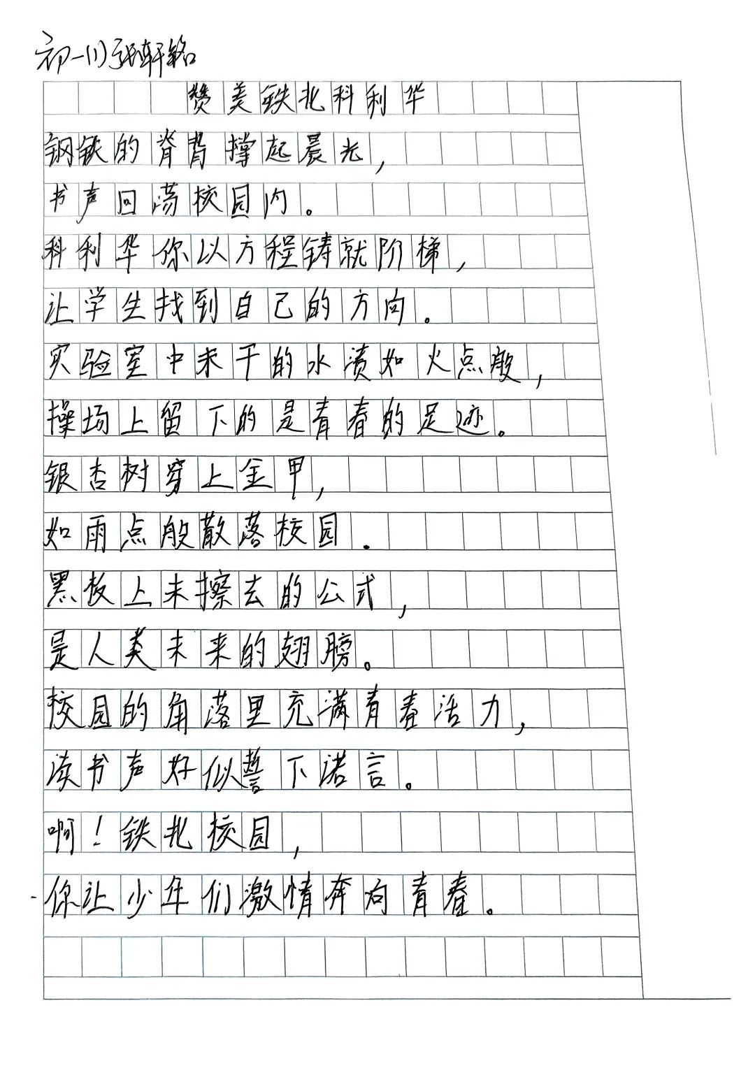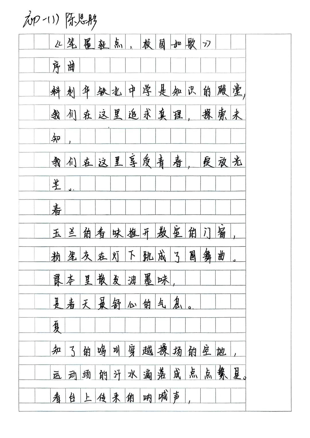“我是科中铁北传书人”活动也得到了初一、初二同学们的热烈响应。大家围绕“科中铁北校园”这一主题,以细腻笔触描绘校园的美好景致,倾诉对校园的深厚热爱之情。他们用文字搭建起沟通的桥梁,让更多人领略到科利华铁北学子卓越的文学风采。