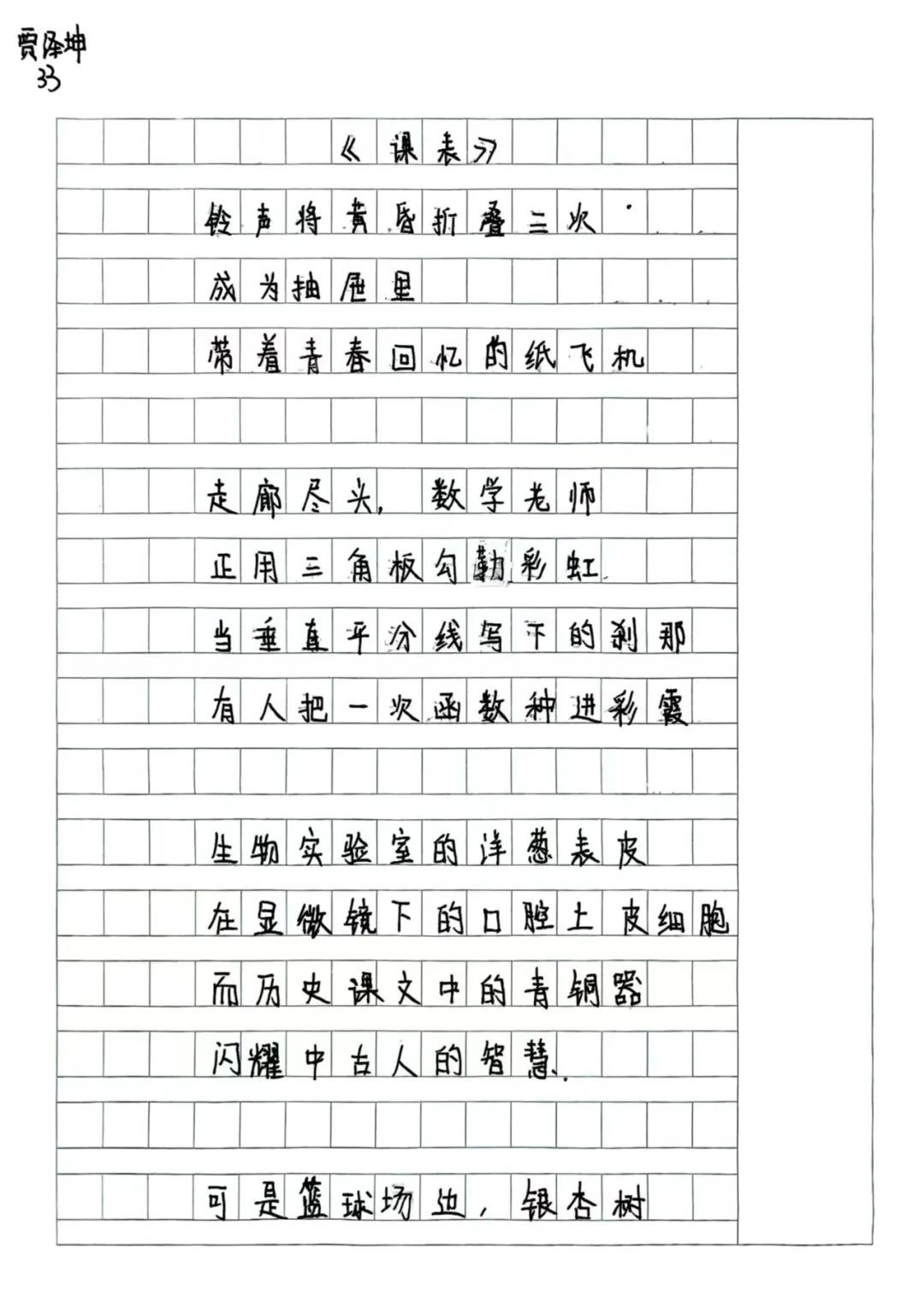 初二(3)班 贾泽坤