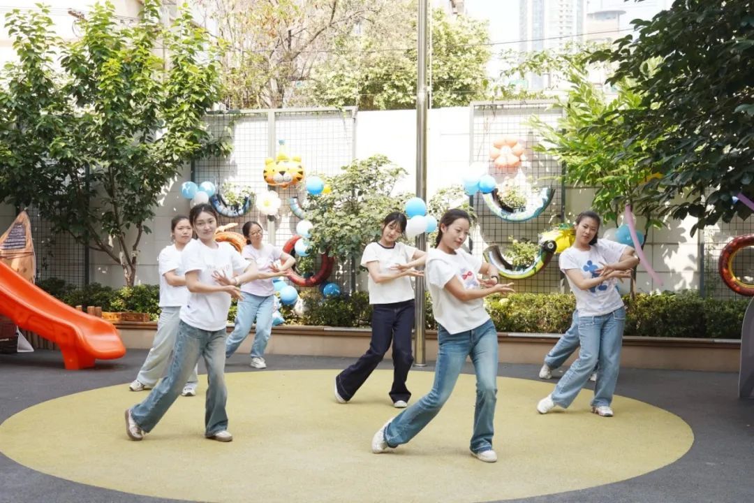 青年教师则献上舞蹈《花开有时》,轻盈的舞姿如春风化雨,传递出对幼儿未来的美好期许。