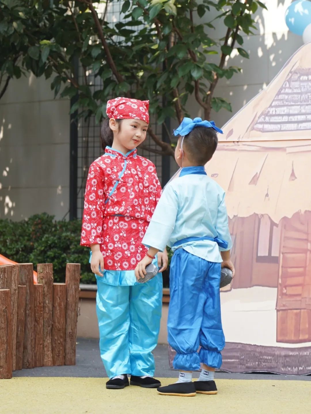 接着,大班幼儿自编自演的儿童剧《大禹治水》成为全场焦点。小演员们用稚嫩生动的表演,将上古英雄治水的智慧与勇气演绎得童趣盎然,赢得阵阵掌声。
