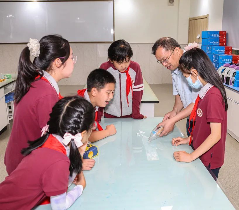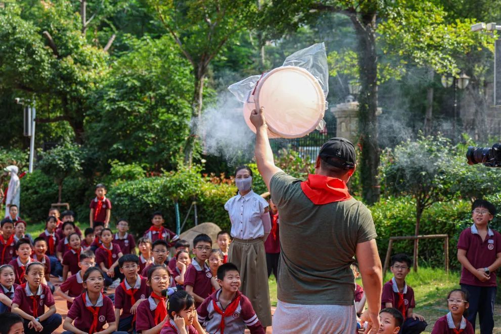 老师为同学们带来了一场“科学魔法秀”。空气炮、魔法火焰等实验让人目不暇接,老师们还用科技为同学们送上节日的祝福,祝福同学们童心永驻。