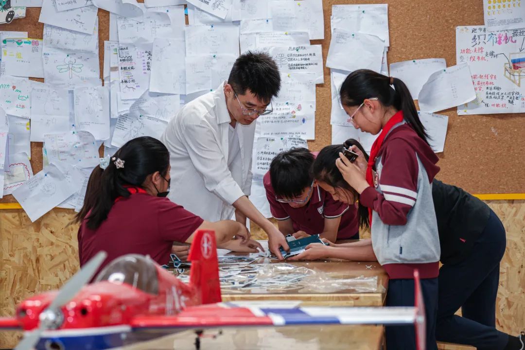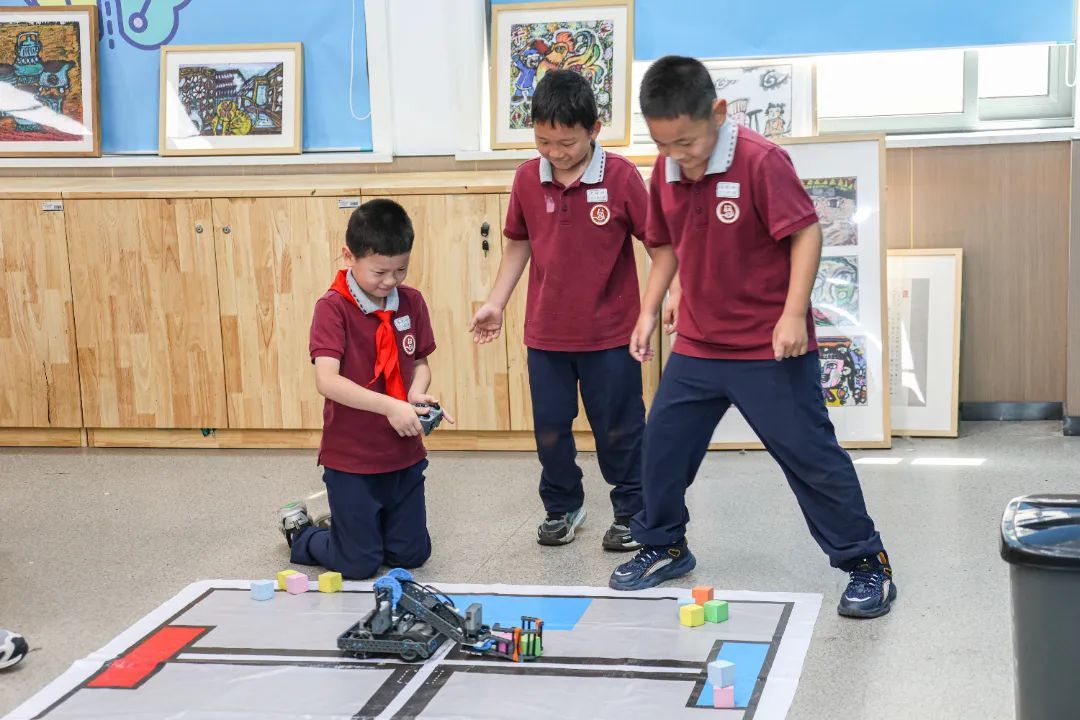 科技游园会更是热闹非凡,同学们在绘画区挥洒创意,在科学馆拼装航模、操控对抗机器人、制作 “分层饮料” 与简易实用的迷你吸尘器,还有的同学沉浸于侦探小游戏的推理乐趣中……一系列精彩纷呈的活动为同学们留下了难忘的节日回忆,也为他们的成长之路点亮了文化与科技的明灯。老师们也参与其中,专注于掐丝珐琅书签、柿柿如意扭扭棒、绒花与香薰蜡牌的精致工艺,与同学们共享节日欢乐。