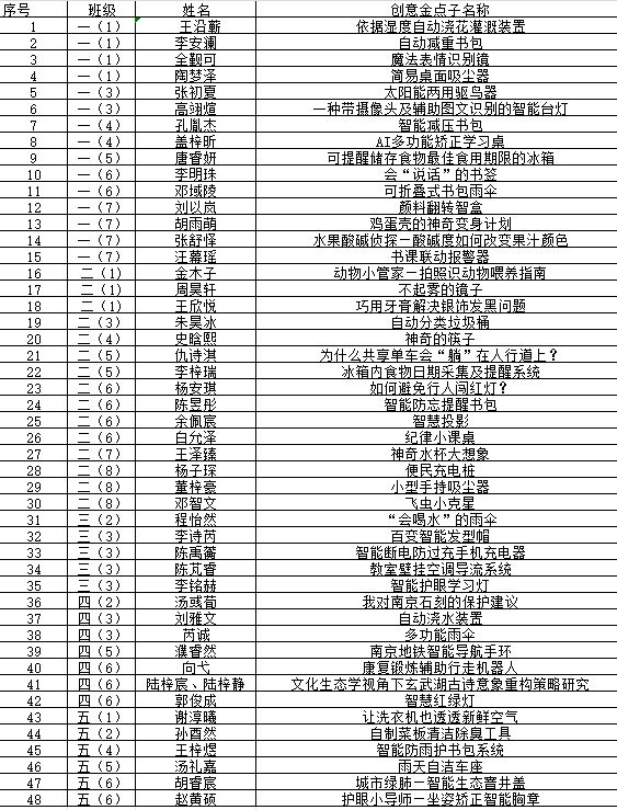 “小小科学家”研究立项学生名单如下: