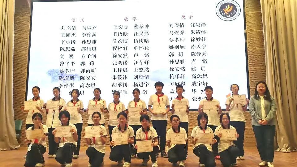 此次表彰大会旨在弘扬榜样精神,激励全体同学持续追求卓越、不断挑战自我。大会现场气氛热烈而庄重,随着主持人激昂的开场,表彰活动正式拉开帷幕。大会对获得科英优秀奖的学生进行了表彰。校务委员倪立擎以及各学科组长为获奖学生进行颁奖。