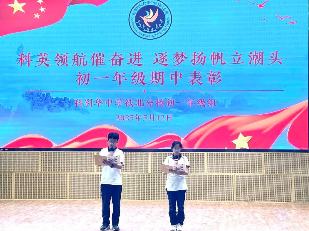 春风化雨育桃李,榜样领航正当时。近日,科利华中学铁北分校初一年级 “科英领航催奋进,逐梦扬帆立潮头”2024-2025 学年第二学期期中表彰大会在校园内隆重举行。校务委员倪立擎、初一年级组长吴晓璐以及全体师生齐聚一堂,共同见证荣耀时刻,共享收获的喜悦。