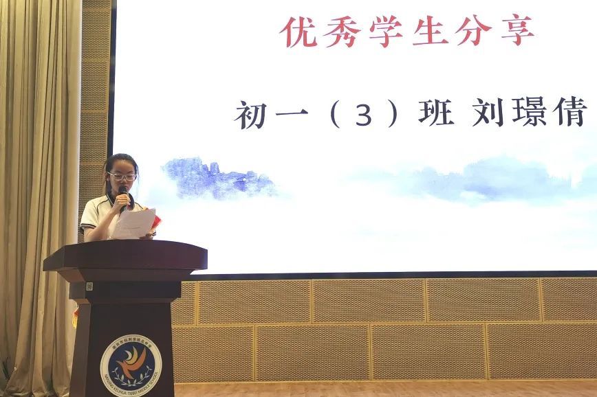 随后,初一(3)班刘璟倩同学作为科英优秀代表进行了学习分享。她结合自身学习经验,从各门学科出发,真诚地分享了自己独特的学习经验与实用方法。她还特别强调了同伴学习的重要性,鼓励大家互帮互助、共同进步。