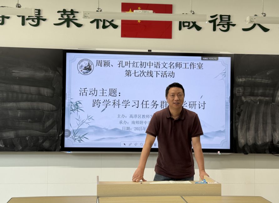 2025年6月12日,周颖、孔叶红初中语文名师工作室第七次线下研讨活动于南师附中高淳学校成功举行。本次活动紧扣“跨学科学习任务群教学”主题,旨在探索核心素养导向下的语文教学创新实践。工作室全体成员齐聚一堂,共同参与了深度研讨。活动呈现了两节极具启发性的课例与讲座。