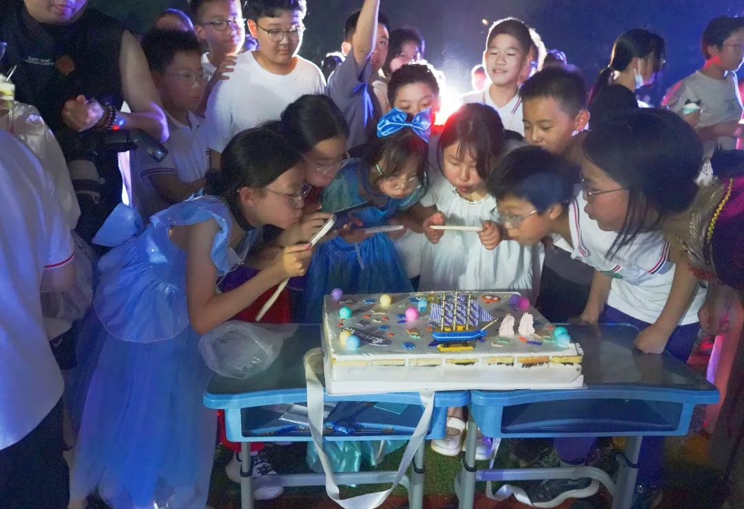 活动最后,同学们共同点燃象征希望与成长的毕业篝火,围绕篝火许下成长的心愿。跃动的火焰映照着每一张稚气的脸庞,同学们手捧精心准备的毕业蛋糕,在星空下分享甜蜜与祝福。