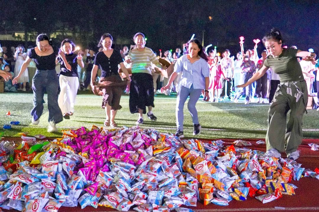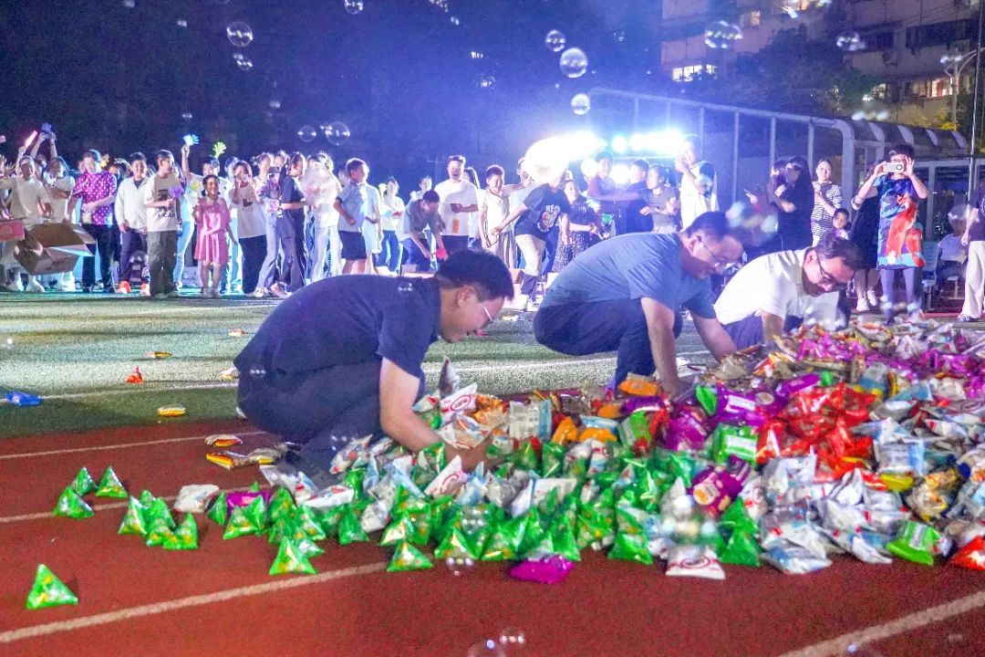 活动现场特别设置了“零食大作战”等互动游戏环节。校领导、任课教师与家长代表纷纷加入,和同学们一起在趣味竞技中尽情欢笑。
