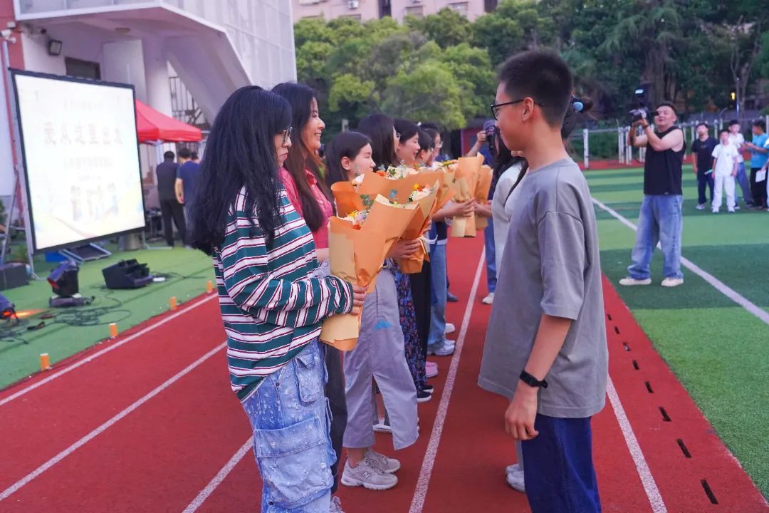 学生代表为六年级全体任课老师献上鲜花与拥抱,用最真挚的情感,为六年的师生情谊写下温暖注脚。