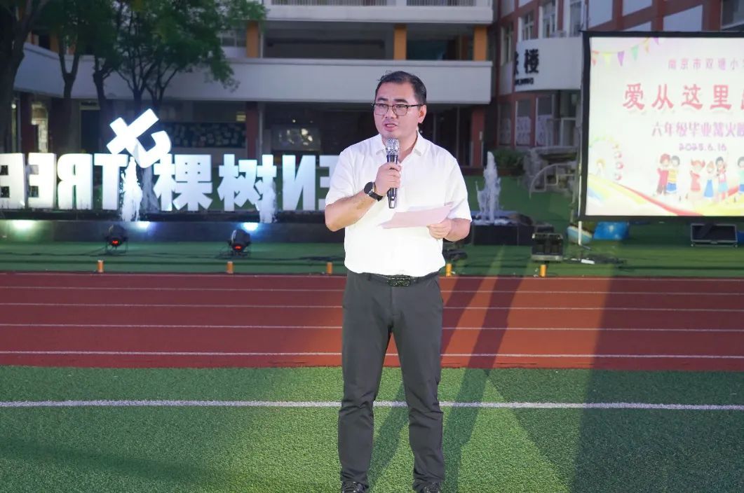 南京市双塘小学校长阙俊为同学们送上毕业祝福,他回顾了同学们六年的成长历程,从懵懂孩童到翩翩少年,每一个进步都凝聚着个人的努力、师长的培育和家长的陪伴。面对即将开启的中学新征程,阙俊校长提出三点期望:一是要持守善良,在未来的选择中始终坚守温暖与底线;二是要心怀感恩,铭记成长路上的点滴温暖;三是要铭记校训,以“深行达远”的精神扎实求知、胸怀格局,勇敢追梦。