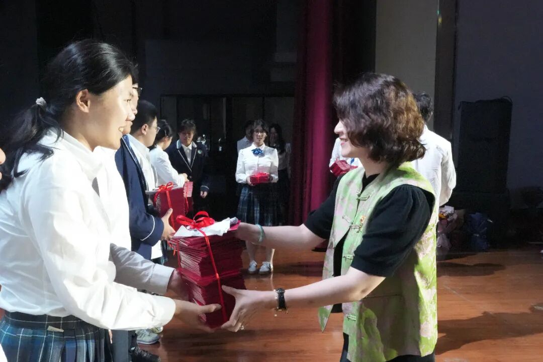 表演尾声,王兰校长走上舞台,为班级代表郑重颁发毕业证书。这一庄重时刻,是三年耕耘的成果见证, 是属于全体南航附中学子的 “成人礼”,更是奔赴未来的 “启航令”。