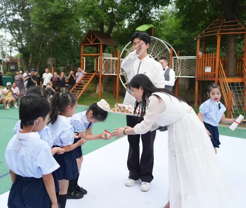 园长陈艳艳亲手为每位孩子颁发人生第一张毕业证书,凝聚着幼儿园对孩子们的深深祝福。孩子们接过证书时,眼中闪烁着自豪与对未来的憧憬。