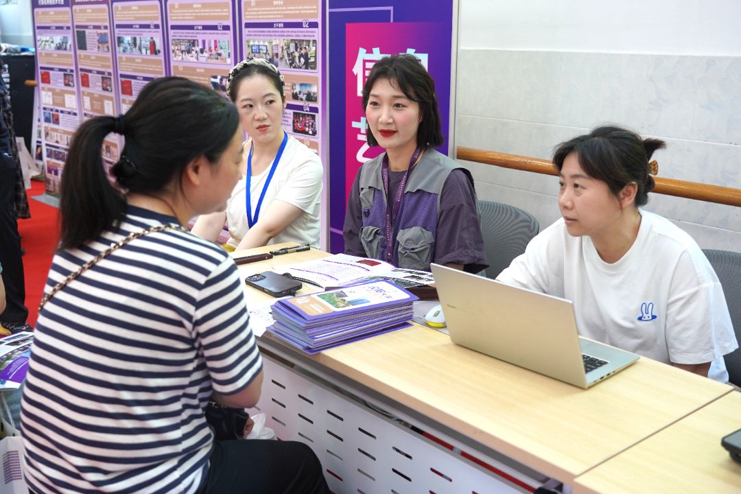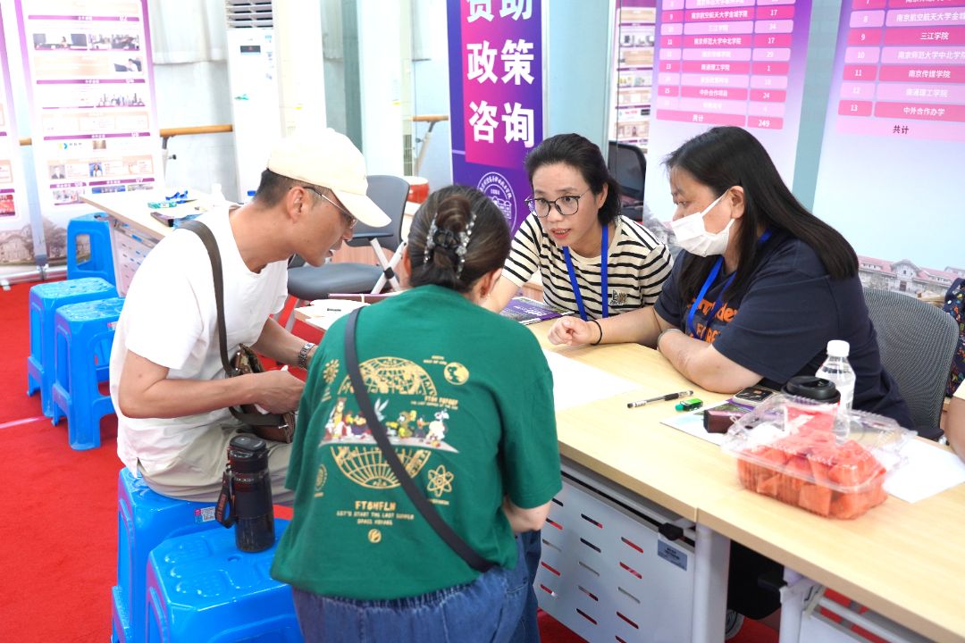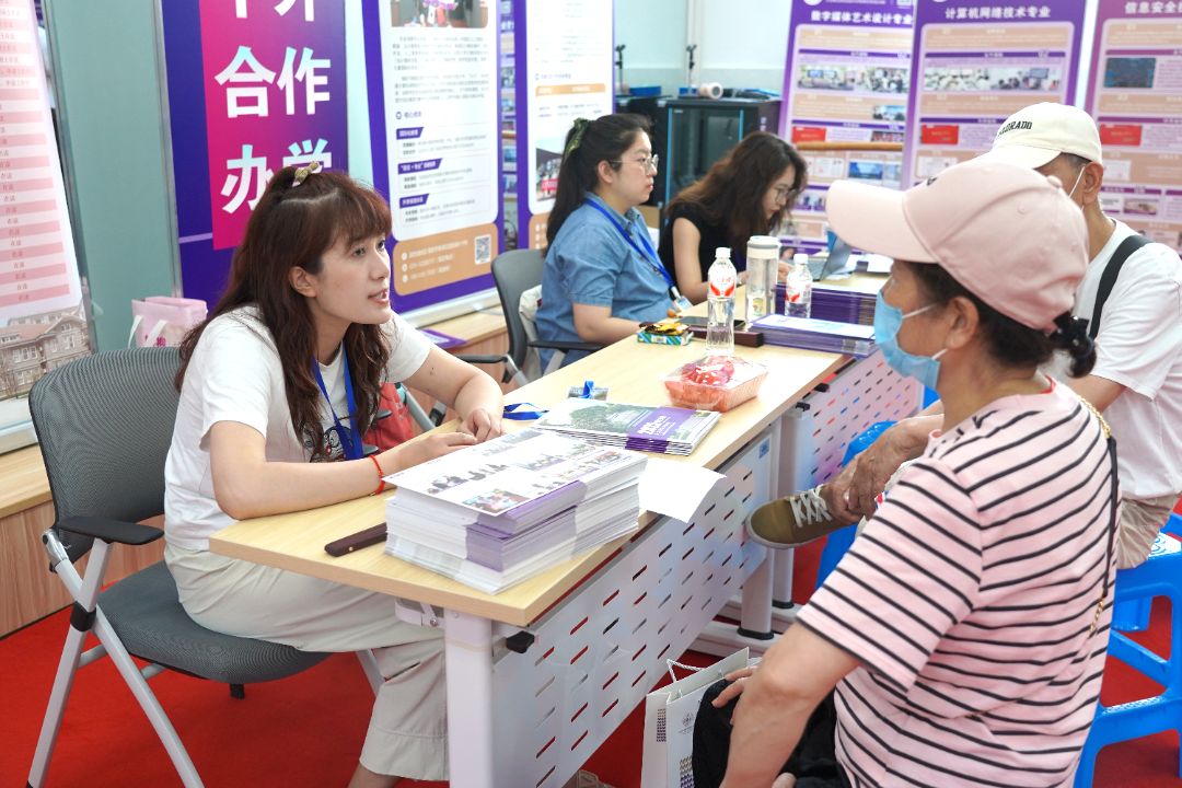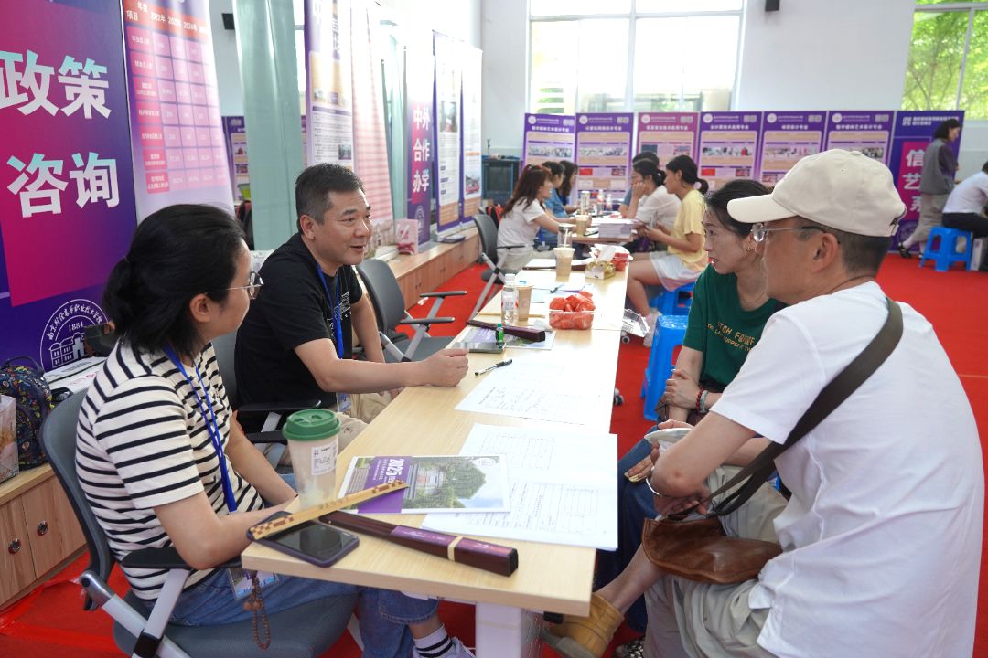 咨询会现场气氛热烈,各专业展位前均排起 “咨询长龙”。活动现场,各招生组老师们专注负责,精准提问并耐心解答家长的问题。学生志愿者们热情服务,或指引路线、发放资料,或分享求学经历,以亲身经历展现学校风采,助力考生和家长深入了解学校。