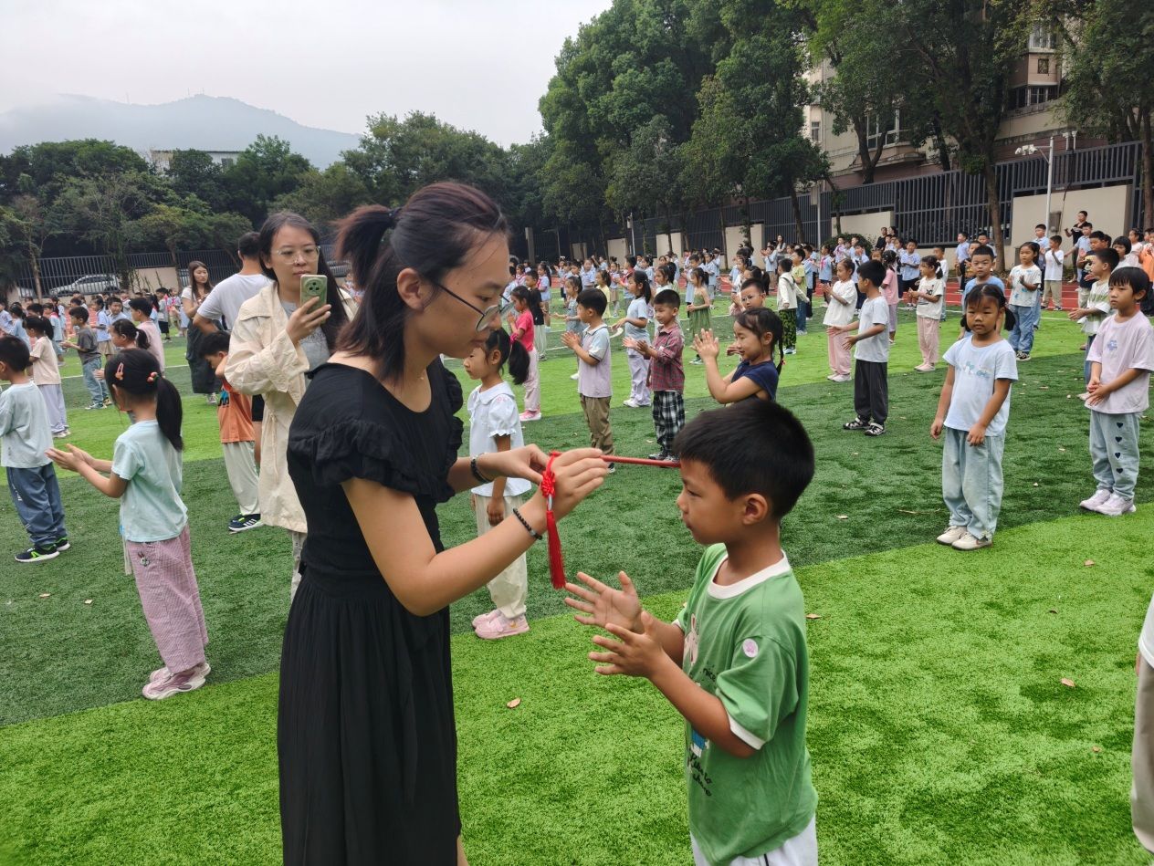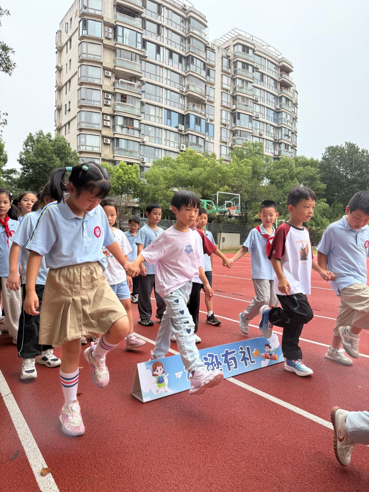 开学典礼上,二年级全体学生手拉手,带领一年级新生依次跨过“志存高远”“乐学善思”“阳光自信”“谦逊有礼”四道象征成长的门槛,每一道门槛都承载着学校对新生的期许,孩子们迈过门槛时的笑容,成为校园里最动人的风景。