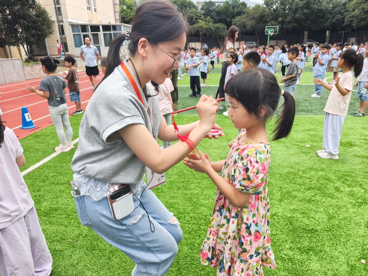 随后,一年级各班班主任老师手持朱砂笔,在每一位新生的额头点上红痣,寓意“开蒙启智、眼明心亮”。