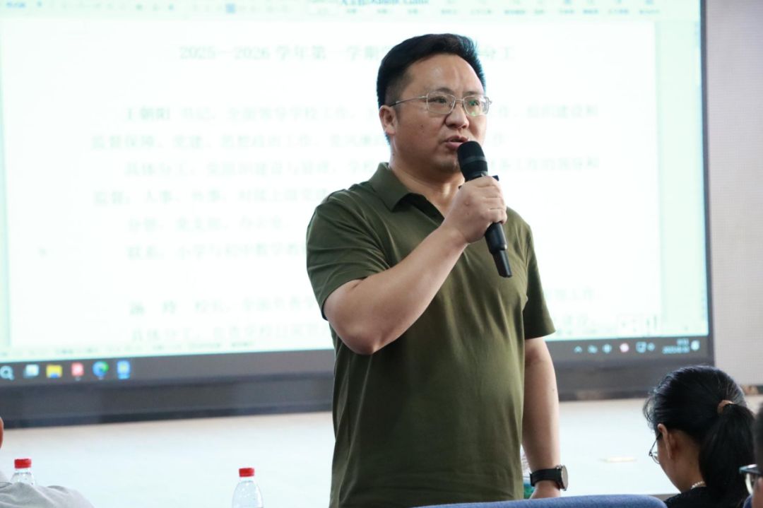 接着,李亮副校长围绕校园安全、后勤保障及食堂管理工作作出部署并作出郑重承诺。李校长的部署务实有力,这份对校园“衣食住行”的周全守护,是学校稳步前行最坚实的后盾。