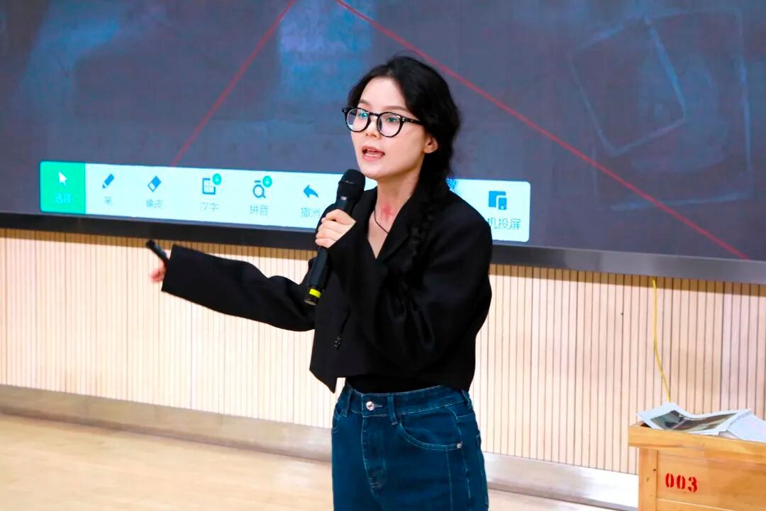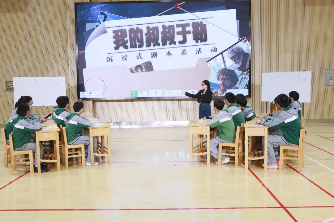周雪黎老师突破传统课堂模式,将“剧本杀”游戏与文本解读深度结合,以“谁是亲情杀手”为核心议题抛出悬念,激发学生学习兴趣的同时,帮助学生沉浸式体悟人物情感。课上,周雪黎老师层层引导,带领同学们积极参与课本剧表演,进行分组讨论,让语文学习从“被动接受”变为“主动探究”,为在场教师呈现了融合教学在提升语文课堂效能上的生动实践。