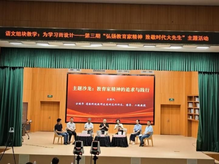 活动举办了以“教育家精神的追求与践行”为主题的沙龙。主持人省教科院教师发展研究所所长方健华与高校教授、知名专家、相关教育家精神研究中心代表、薛法根老师的同事和徒弟围绕“教育家精神”的内涵解读与实践路径展开深度探讨,分享了多维观点与一线经验。他们用最朴素的话语呼吁全体教师,以“教育家精神”为教育之路的指引,为培养担当民族复兴大任的时代新人不懈奋斗,彰显江苏教育人的使命担当。