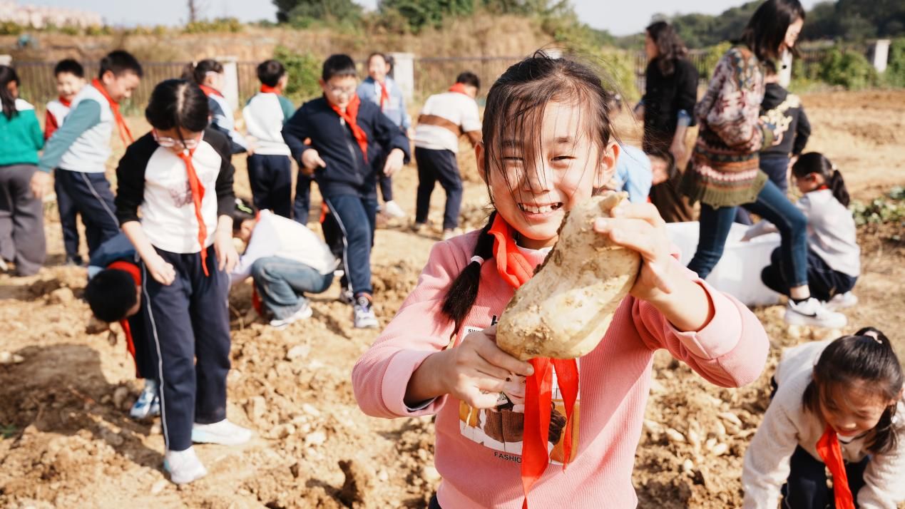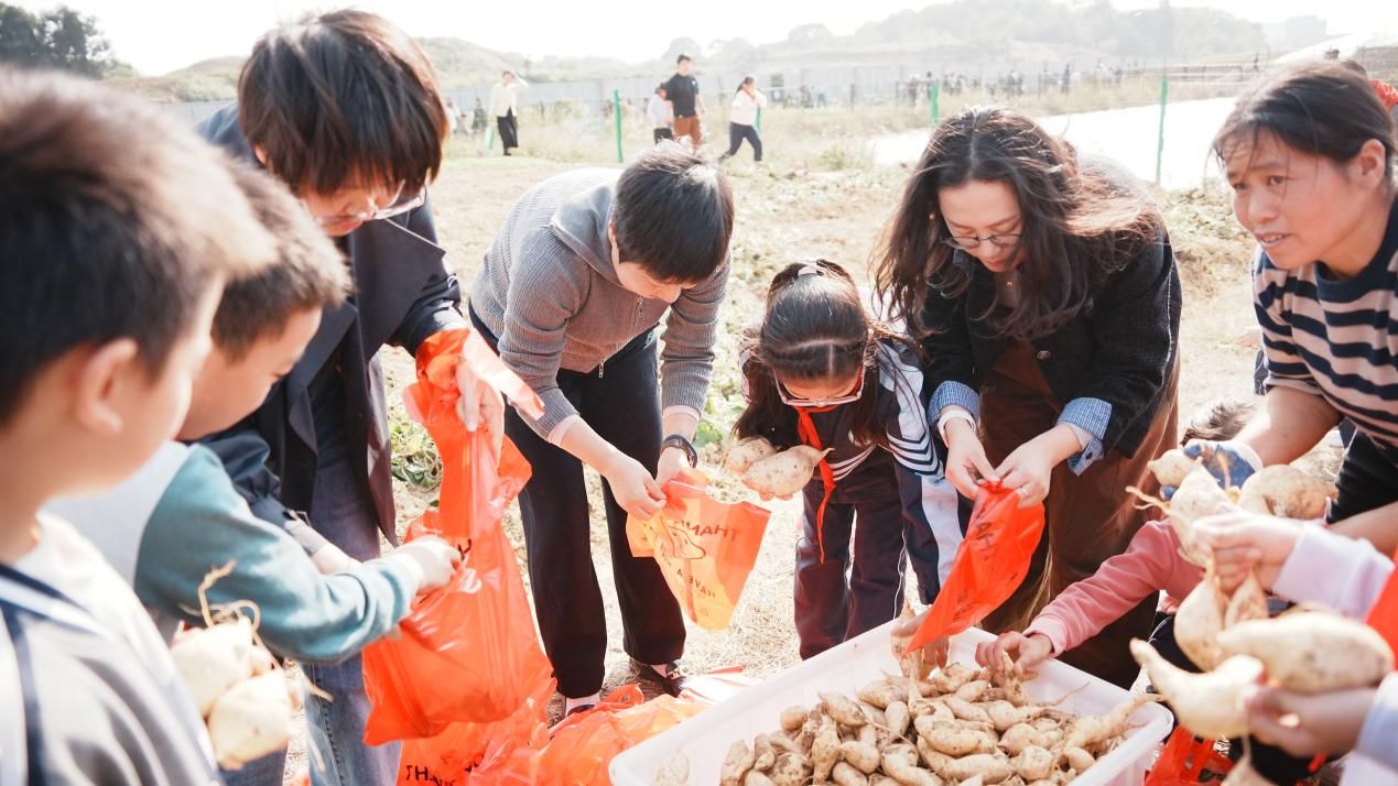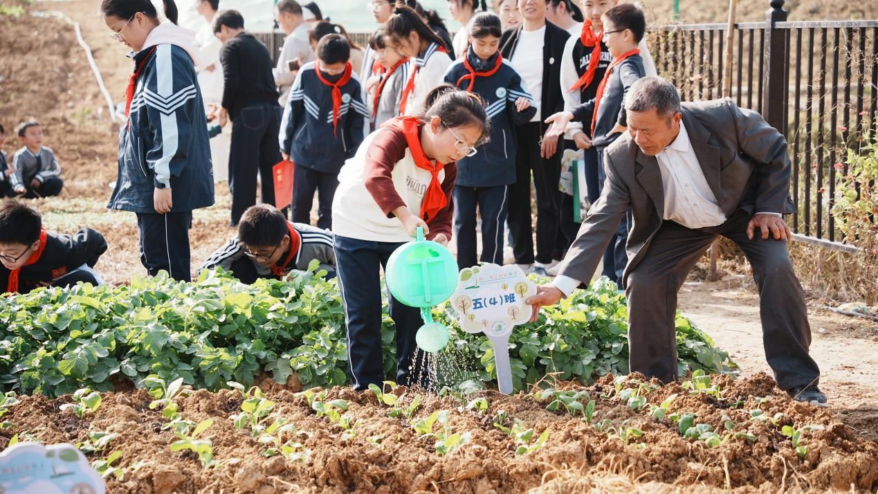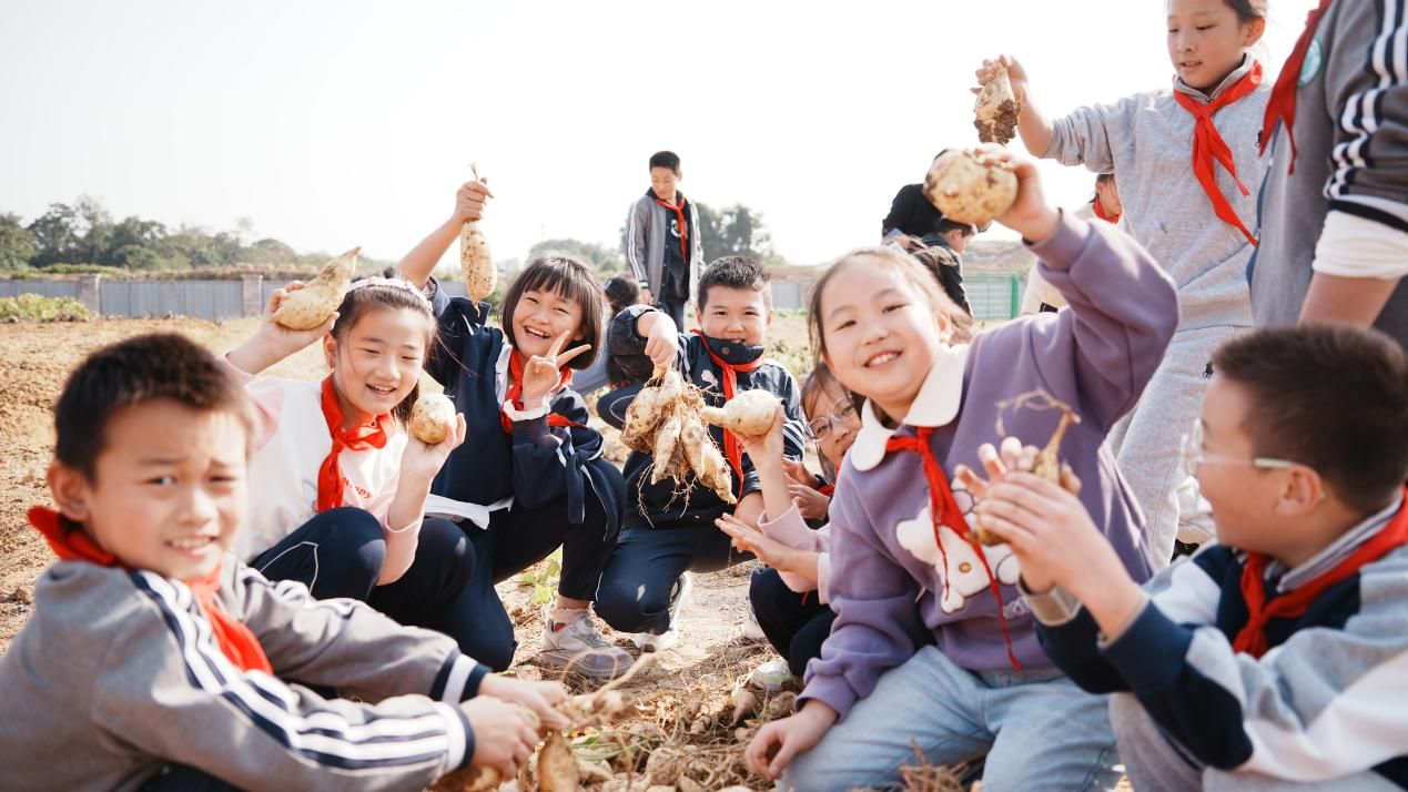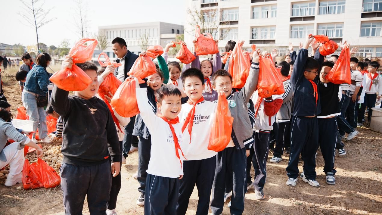 继9月份的花生采摘活动之后。“小芦娃能量场” 的红薯迎来了丰收,孩子们蹲在地里,有的握着小铲子刨土,有的伸手小心拔红薯,脸上的笑容里满是丰收的喜悦;一旁的油菜试验田里,大家分工合作,有的栽苗,有的填土,有的浇水,田间地头满是欢声笑语,热闹极了。劳作的身影穿梭其间,让劳动教育真正在实践中扎根结果。