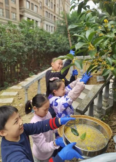 创生类(班本课程):聚焦孩子成长中的“真问题”与实践体验。有的班级探究学校池塘乌龟失踪之谜,采访保安、实地勘察;有的班级种植大蒜,记录生长故事;还有的班级围绕校园桂花,开展观察、品香、学诗词等活动,让学习扎根生活。